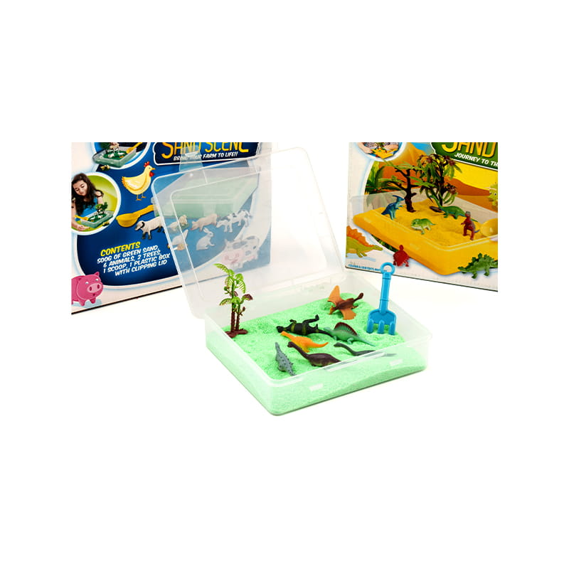 Farm / Dino Arena SCENA est a partum harenae ludere paro disposito liberos. Non continet clara plastic buxum, dives coloris harenae et varietate cute animal insignia. Liberi possunt creare gratis in harenae et disponere eorum ventus animalis et planta ornamenta creare unicum villam et dinosaurum. Hoc ludum non solum stimulate filii creativity et imagination, sed etiam discere de animalibus et prehistoric creaturae in ludo et frui a beatus doctrina time.